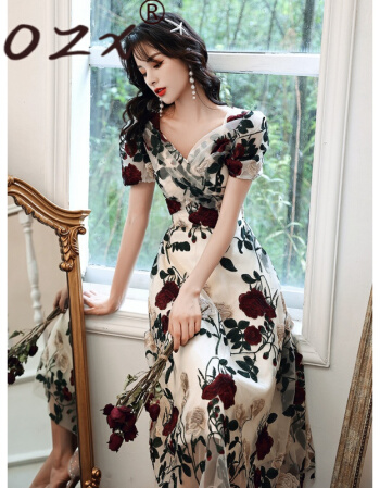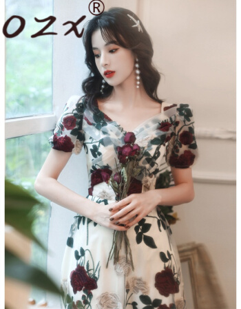 O.Z.X轻奢原创女装刺绣连衣裙女2021年夏季新款宴会晚礼服平时可穿法式小众设计感裙子